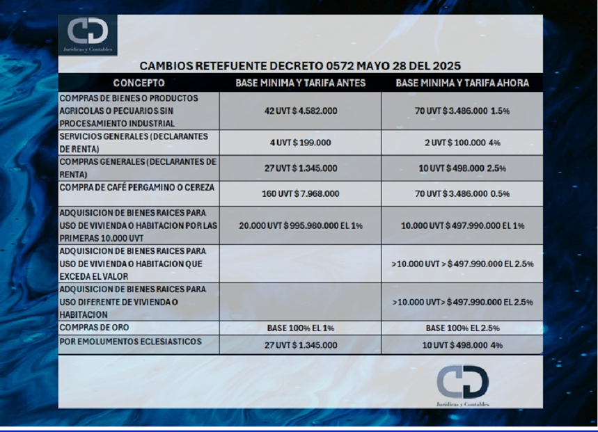 CAMBIOS CLAVE RETENCIONES EN LA FUENTE Y AUTORETENCIONES SOBRE INGRESOS DECRETO 0572 DE MAYO 28 DE 2025